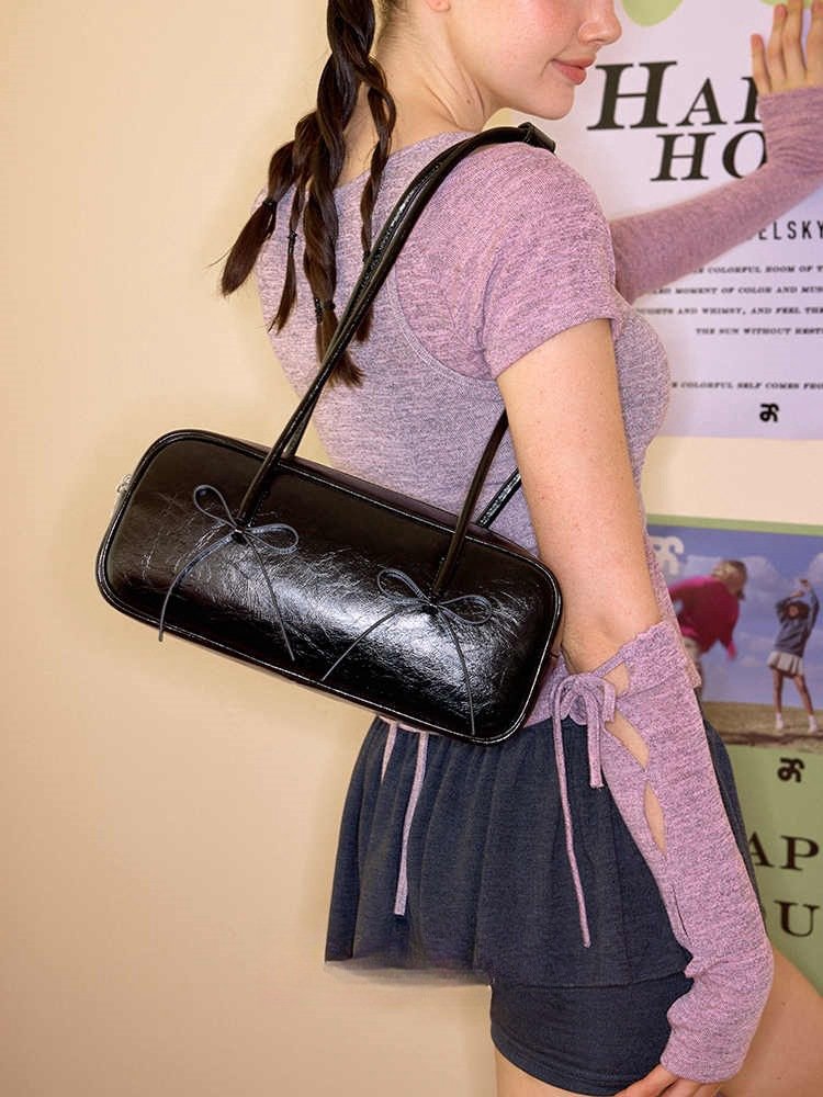 Bring a playful yet polished edge to your daily outfits with this street style Bow Charm Toiletry Bag. Designed in a chic horizontal square silhouette, it features delicate sewing thread details and a charming bow accent for a feminine touch. The double shoulder straps and medium size make it practical for everyday use, while the organized interior keeps essentials neatly in place.