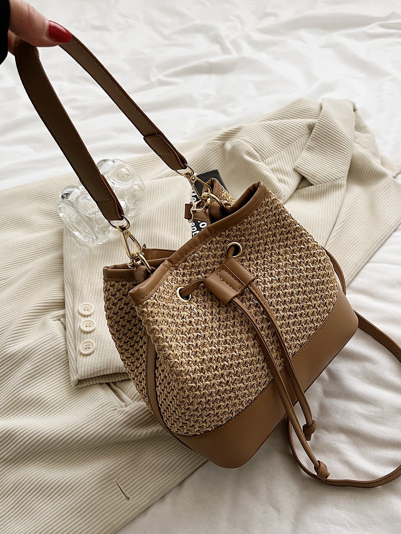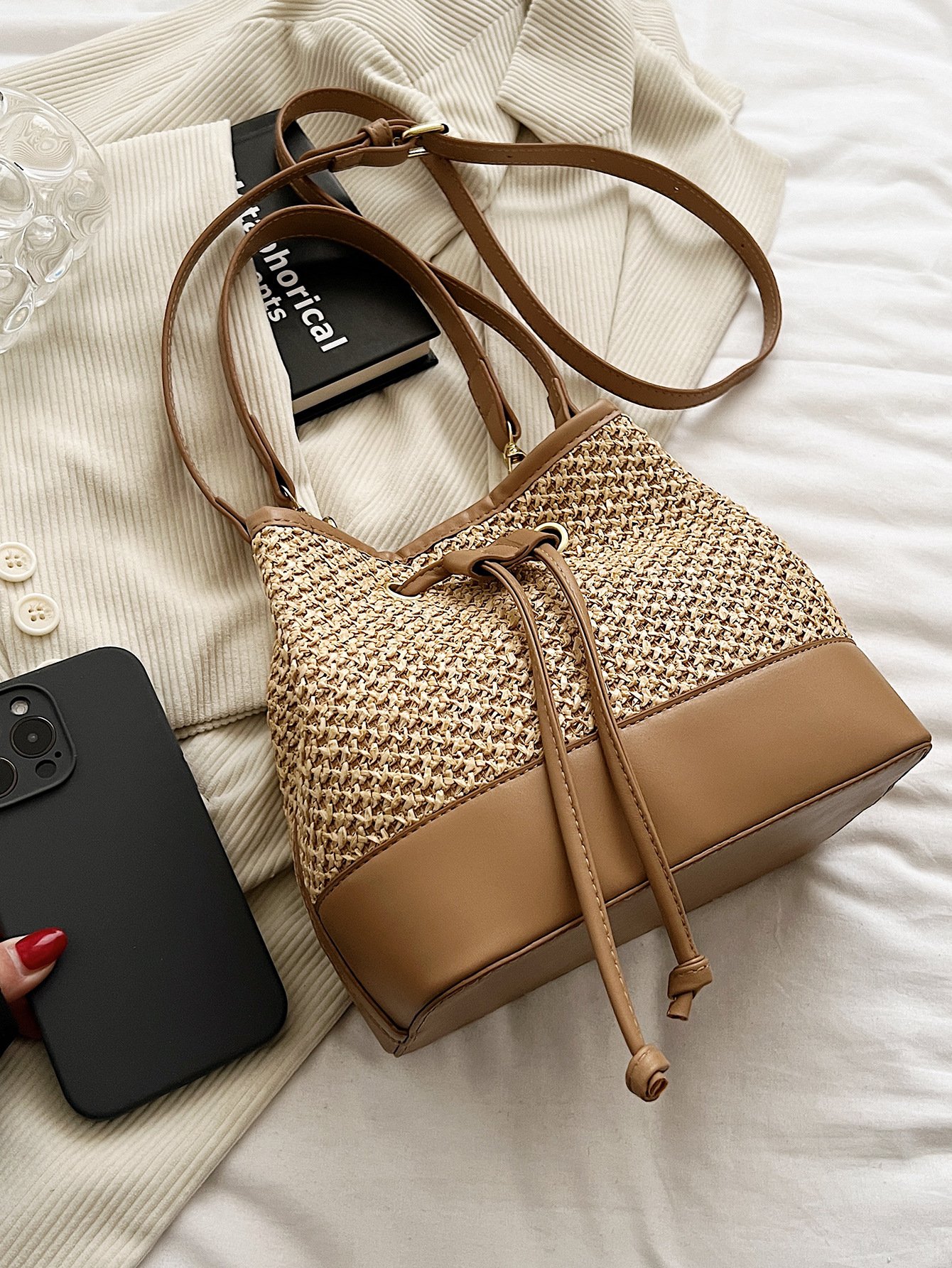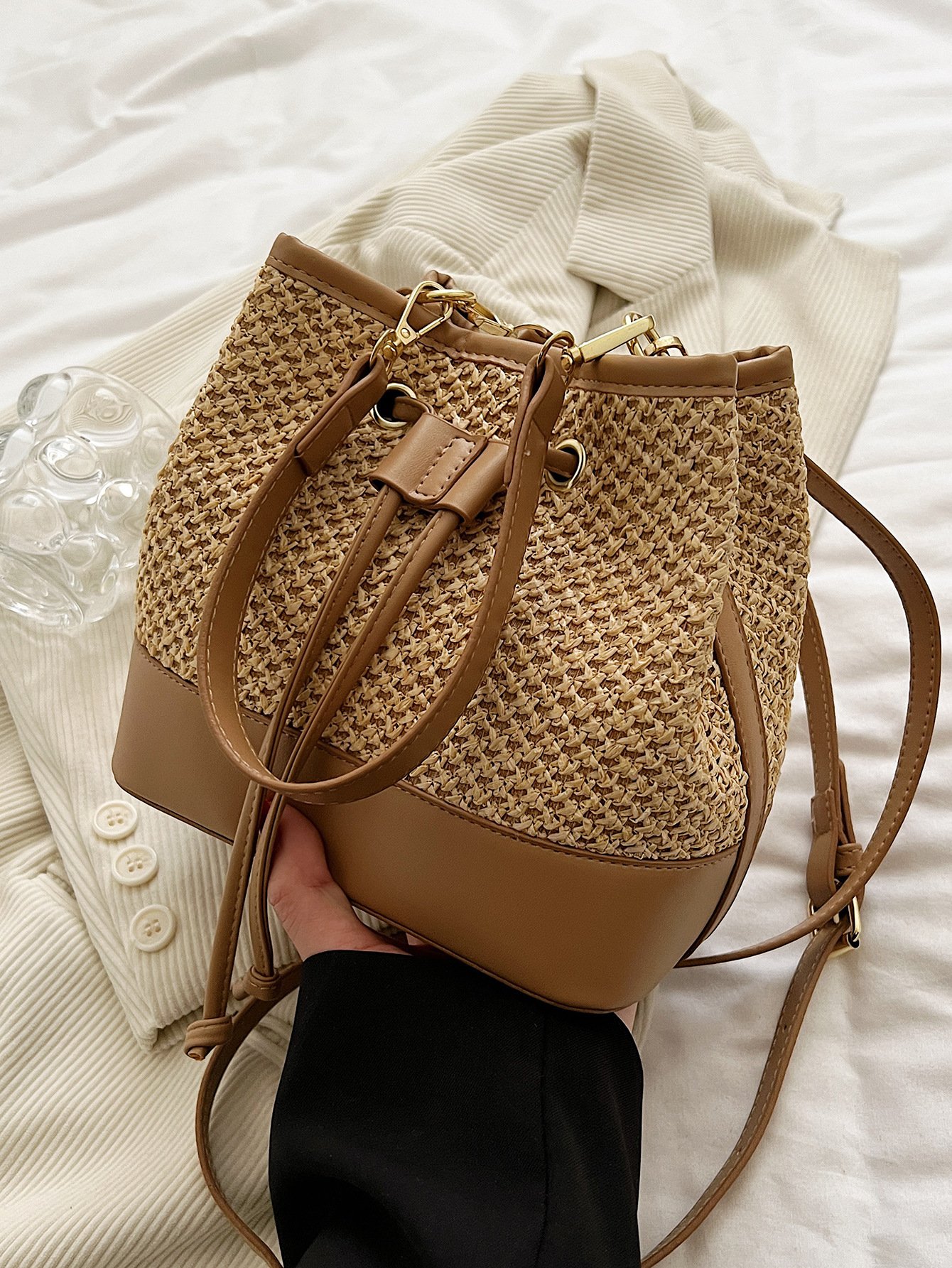 CityStitch Soft Drawstring Straw Crossbody Bag
