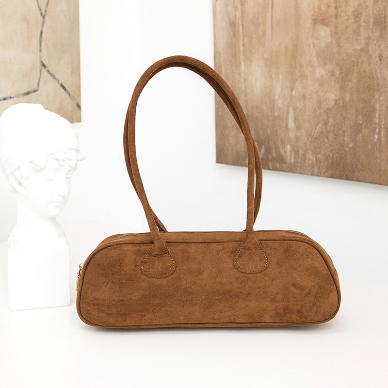 Elevate your everyday look with this oval shaped plush baguette bag designed for modern simplicity. With clean stitching, soft texture, and spacious organization, it’s a perfect balance of cozy style and daily functionality.