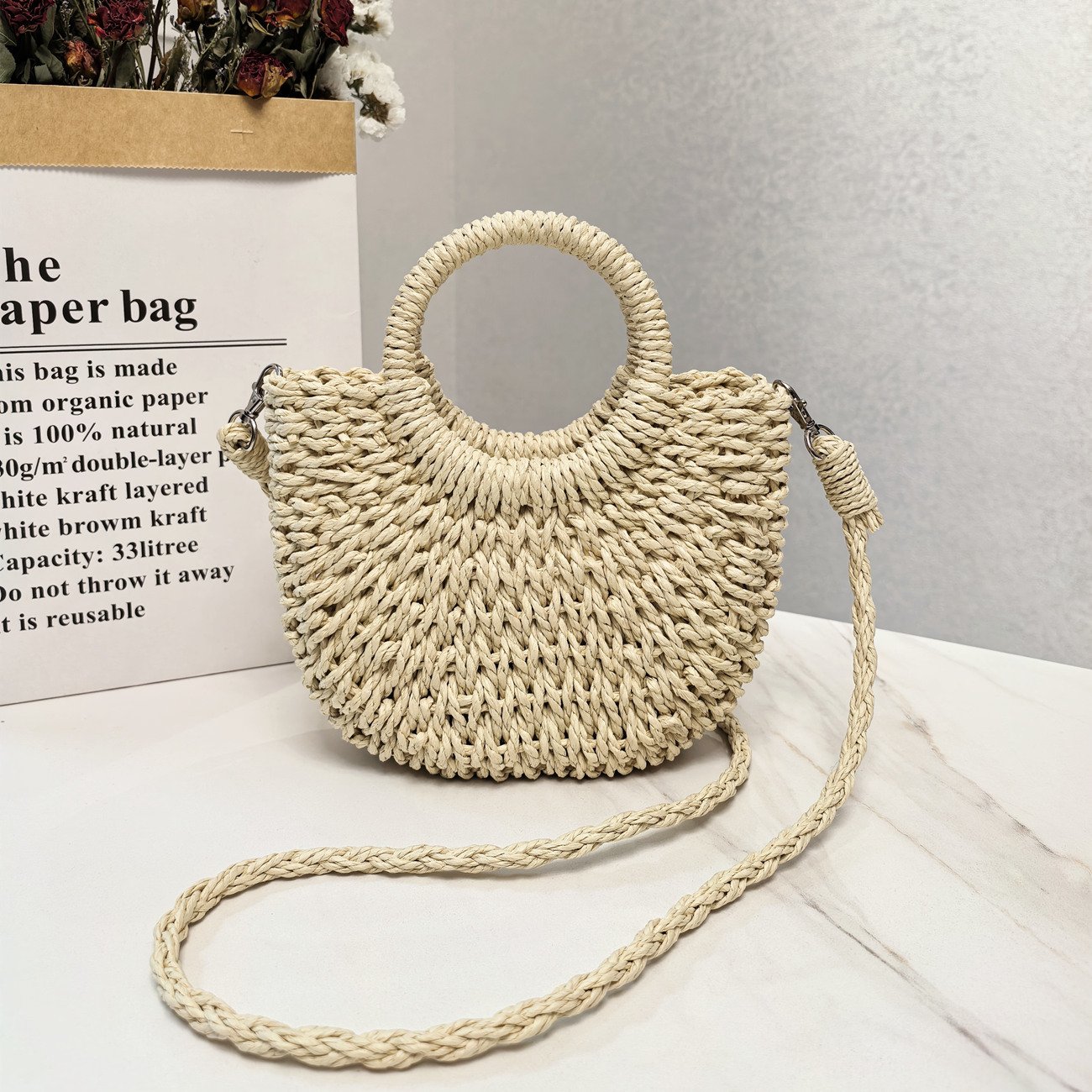 Minimalist Urban Straw Crossbody Bag