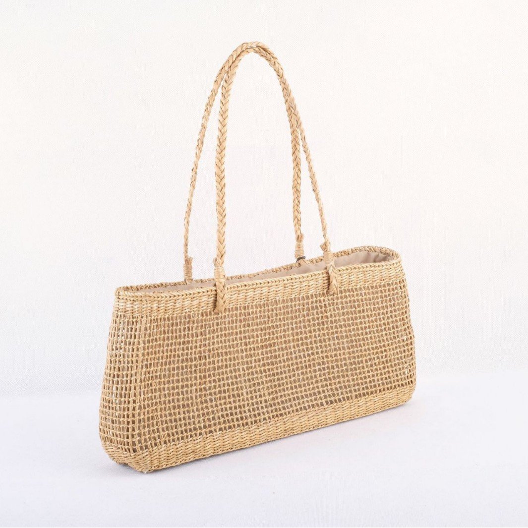 Bring a touch of street fashion charm to your everyday outfits with this handwoven straw bag. Crafted from natural grass with a soft polyester-cotton lining, it blends eco friendly craftsmanship with modern urban appeal. Its medium horizontal square shape offers just the right capacity for daily essentials, while the drawstring closure ensures both convenience and security. Thoughtful interior compartments including a mobile phone pocket, ID pocket, and mezzanine keep everything neatly organized. Designed with double handles and a lightweight build, This bag is perfect for spring styling, casual outings, and leisure travel.