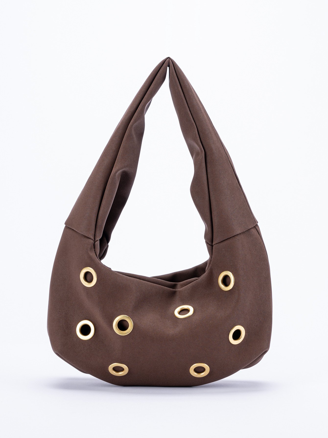 Channel effortless edge with this dumpling shaped PU bag, detailed with bold rivet accents for a touch of attitude. Designed for everyday wear, its compact silhouette features a magnetic buckle closure and soft structure, making it both stylish and easy to carry. A go to choice for urban outings or casual weekends.