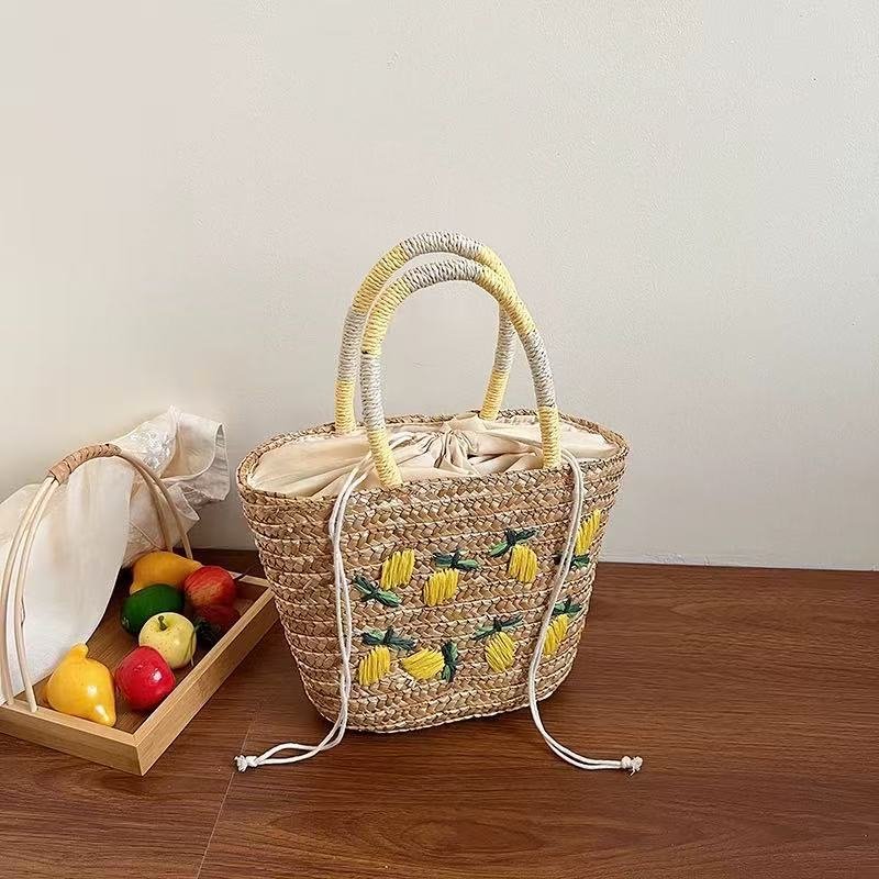 Bring a touch of charm to your everyday look with this dumpling shaped woven bag . Made from natural straw weaving with a drawstring closure , it blends fresh, sweet style with practicality. The structured shape offers durability, while the polyester lining and inner pockets provide secure storage for your essentials. Perfect for daily wear, shopping, or casual outings , this bag adds a natural and stylish accent to any outfit.