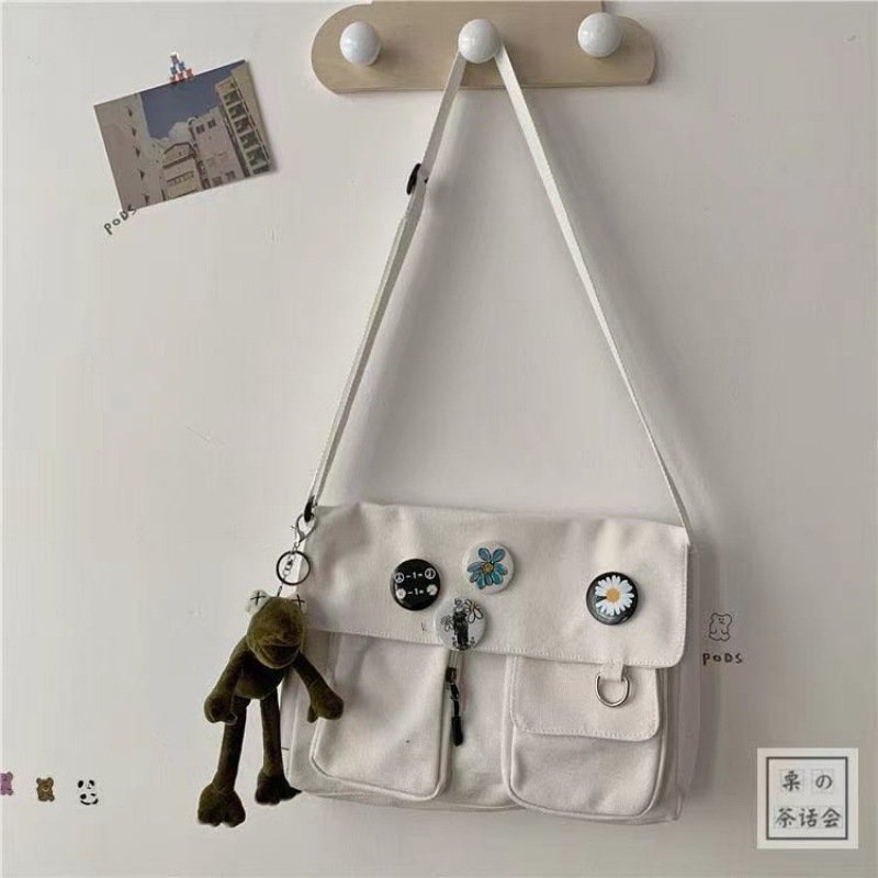 This large Vertical Canvas Crossbody Bag with functional design. Featuring a vertical square silhouette and subtle stitched accents, it’s ideal for casual daily use. Choose from minimalist or badge-adorned styles to suit your vibe.